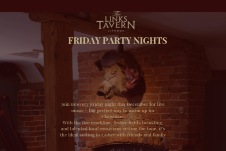 With stripped pine decor, a crackling open fire and muddy boots by the door – The Links Tavern is the quintessential country pub. Settle down to fabulous food and an array of real ales, served up in the cosy, welcoming surroundings of Liphook’s best pub.